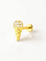 Take a sweet trip down memory lane with the Ice Cream Gold Flat Back Earring, a playful nod to the simple joys of childhood. Remember the excitement of hearing the ice cream truck’s jingle on a warm summer day? Now you can wear that fun memory with these adorable earrings, featuring a dainty scoop of ice-cream on a miniature sugar cone, topped with a generous sprinkle of cubic zirconia crystals.