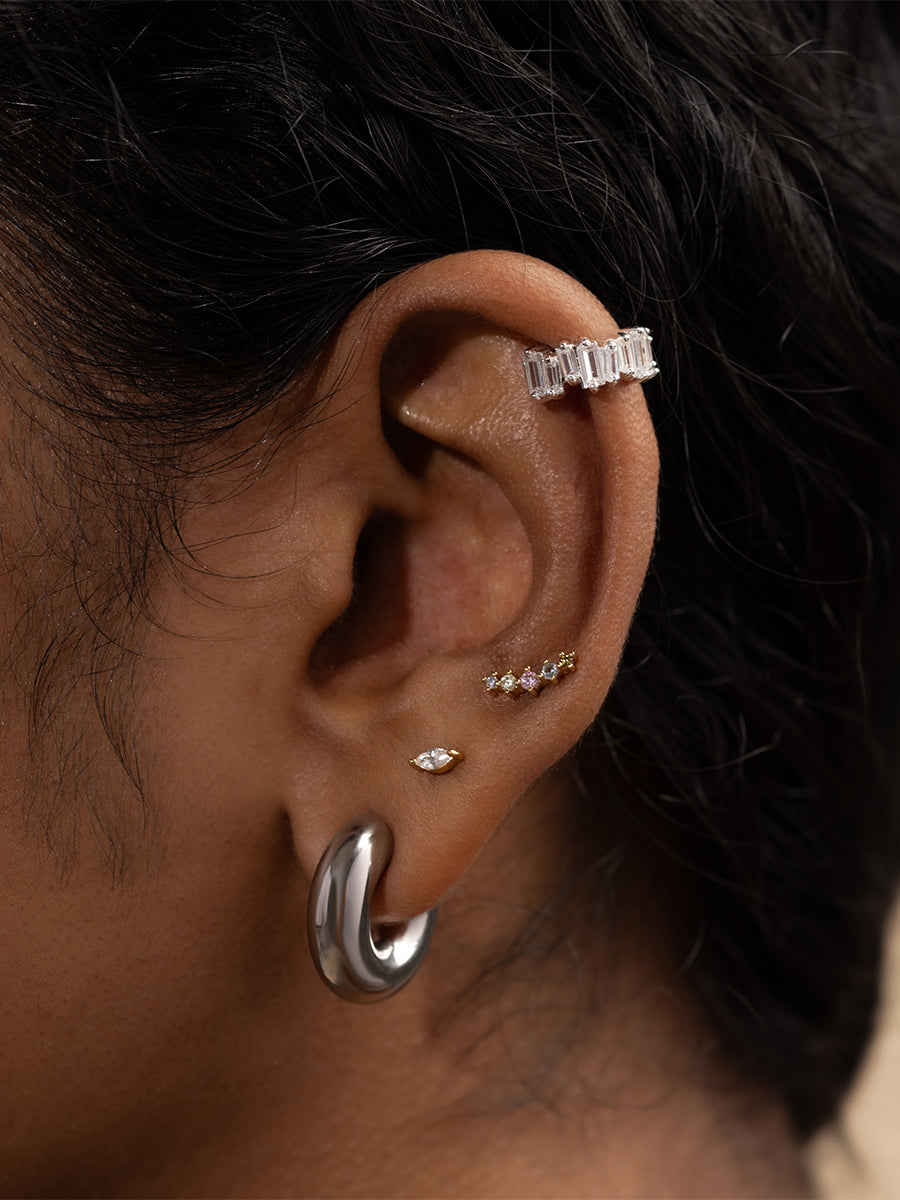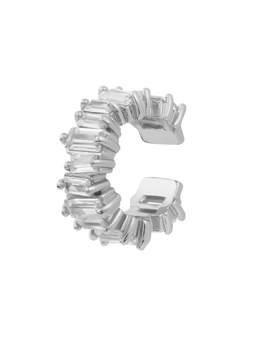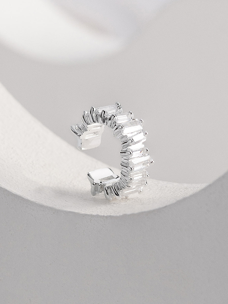 Crafted with baguette-cut cubic zirconia gems designed in a jagged formation, add this petite showstopper ear cuff to your ear stack day or night. No piercing required!