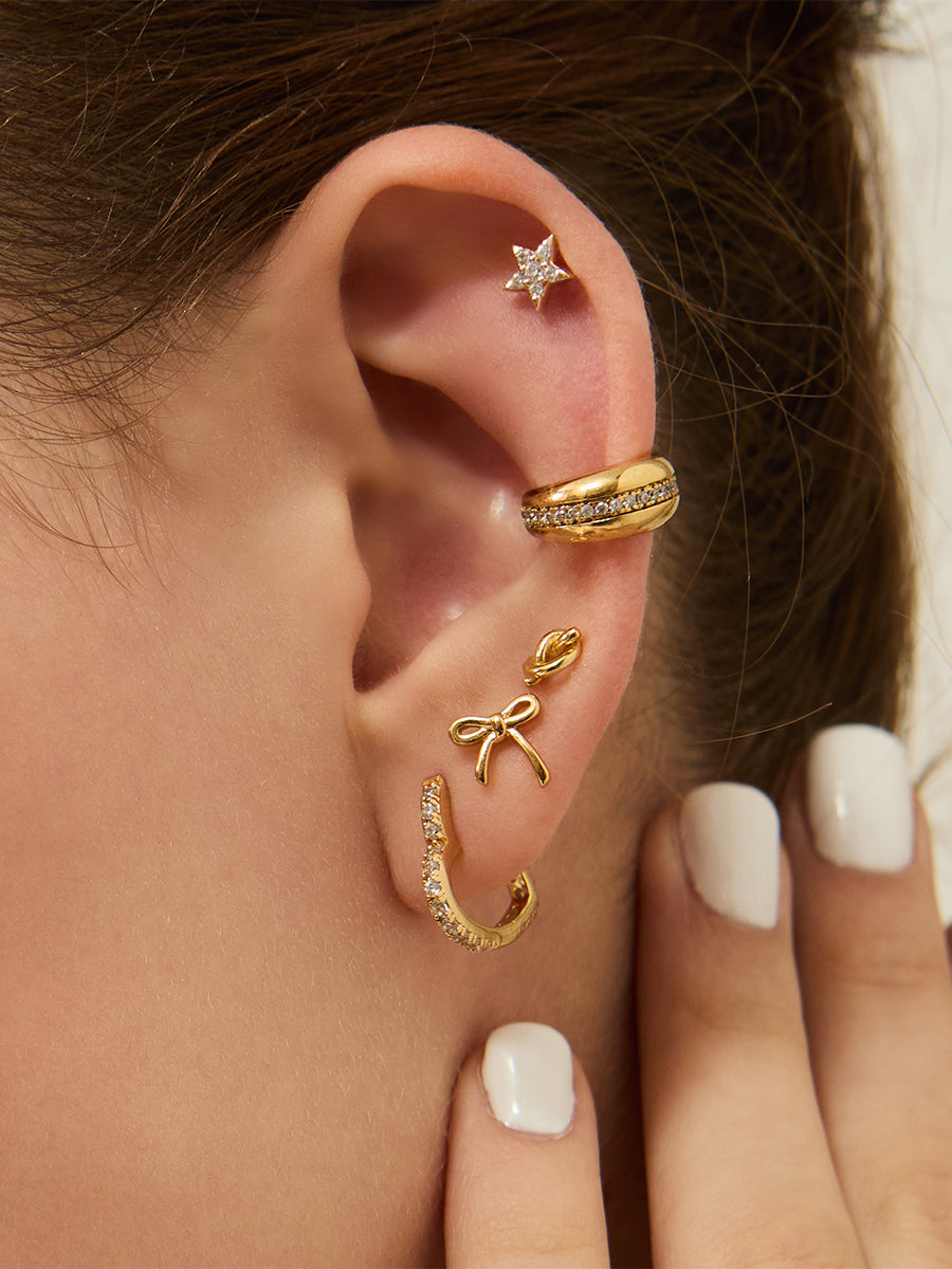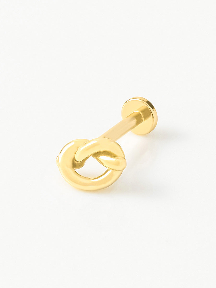 Tie the knot - literally! The Love Knot Gold Flat Back Earring is a throwback to the days of friendship bracelets and secret codes. This delicate gold knot design captures that same sweet sentiment, representing a bond, and symbolizing everlasting love and friendship.