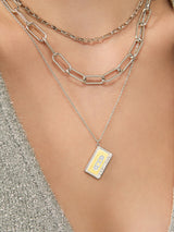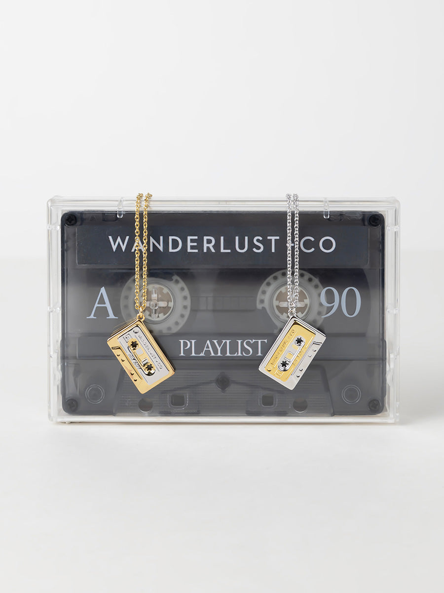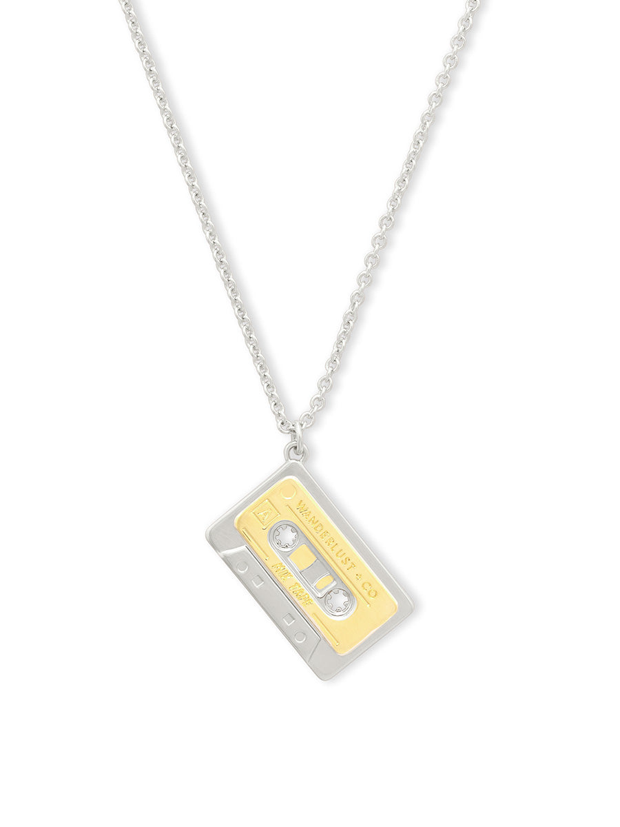 We’re hitting rewind with our Cassette Necklace. Crafted in sleek silver, this necklace features a mini cassette charm, complete with intricate details reminiscent of those tiny spools that held your favorite jams. Wear this as a reminder of the good ol' days when you'd wind up the tape with a pencil, eagerly waiting to hit play.