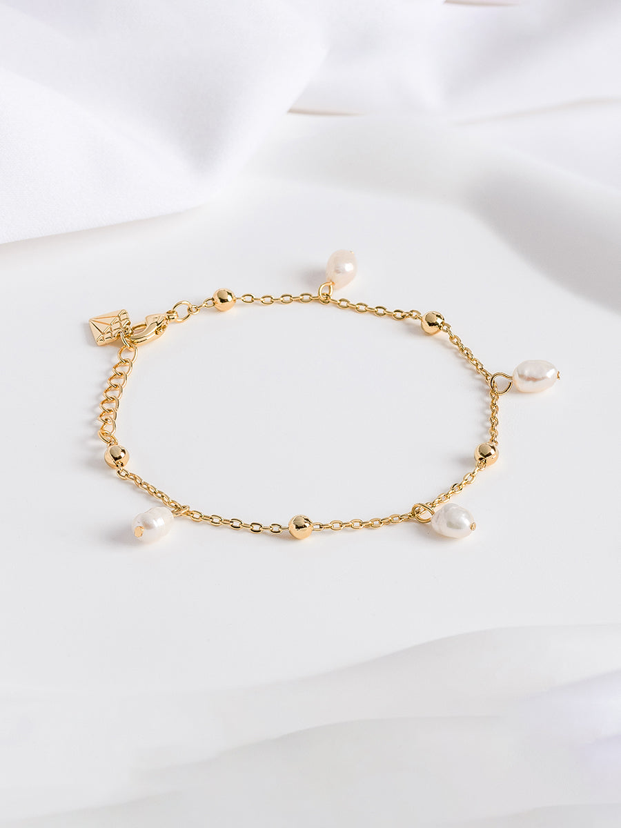 Your next pearly addition lined with mini organic shaped freshwater pearls that's perfect with any beach or casual look.