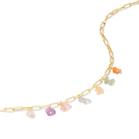 Brighten your look with the Kaleidoscope Beaded Gold Necklace, a radiant piece from our Sun-Hues Collection. The necklace features a stunning mix of colorful gemstone chips and a delicate gold chain, creating a perfect balance of organic charm and modern elegance. The vibrant array of hues—ranging from soft pastels to rich earth toes—captures the beauty of a sunlit shoreline. Whether worn alone or layered, this effortlessly chic piece adds a touch of warmth and wanderlust to any look.