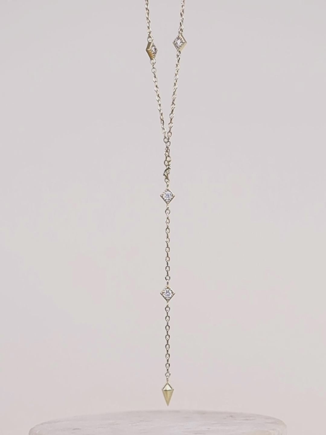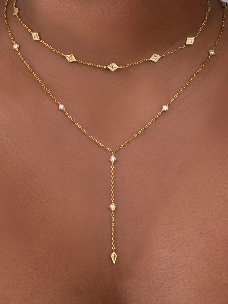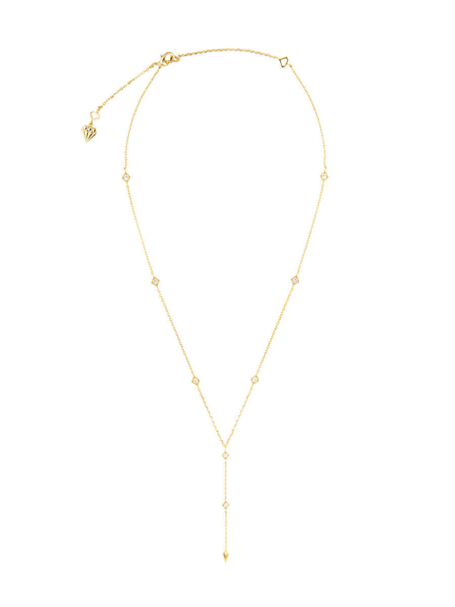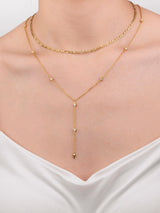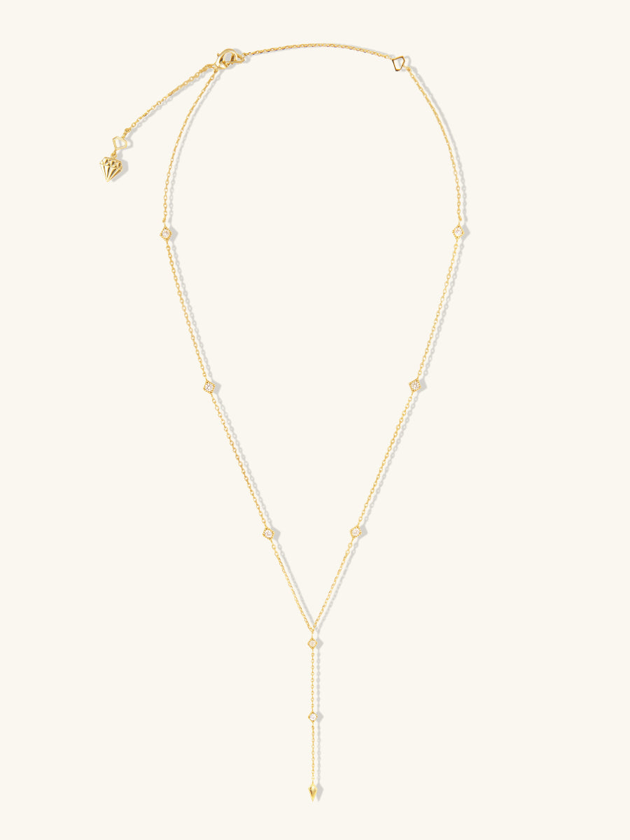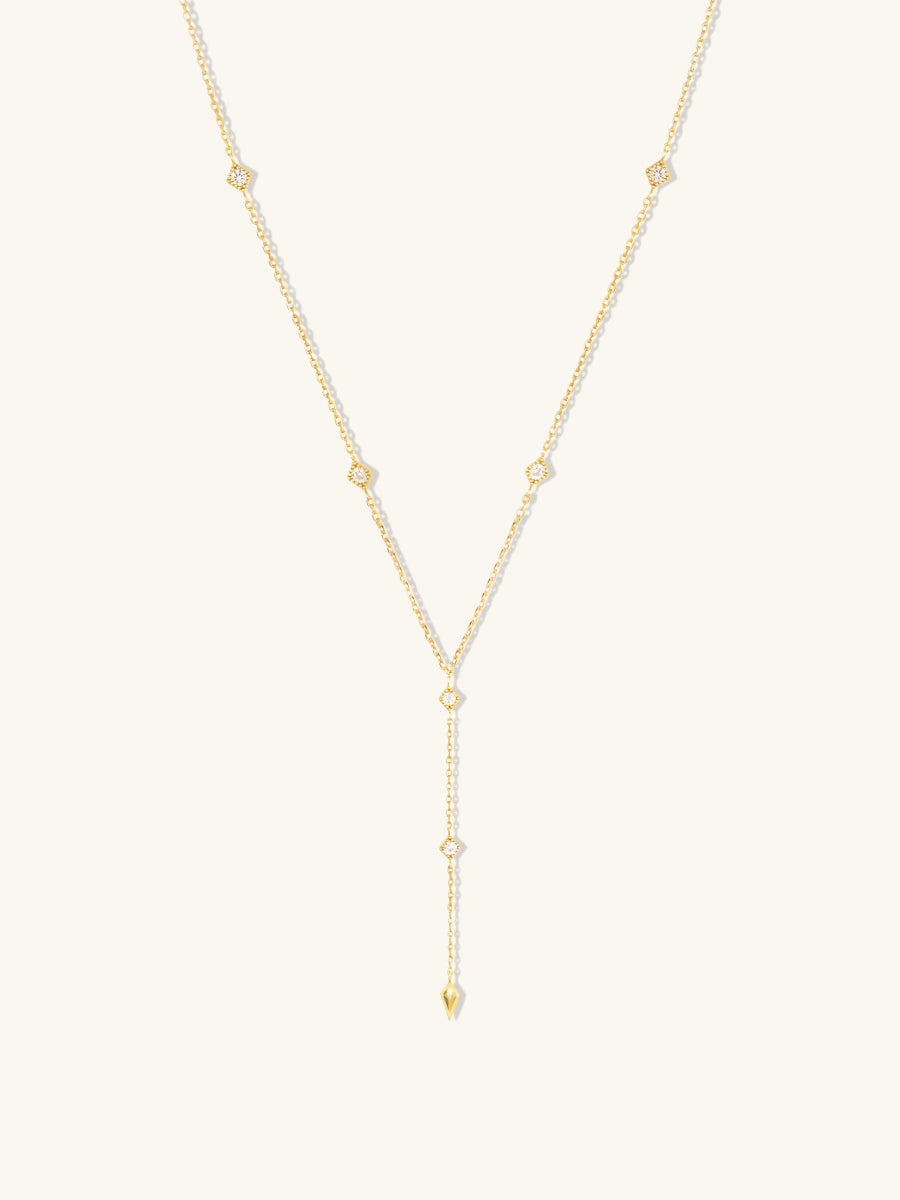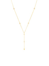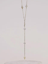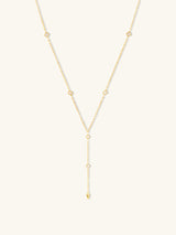 Delicate lariat piece that adds dimension to your everyday look. With dainty drops that sit on a classic chain, it’s a versatile style that effortlessly transitions from minimalist chic to evening elegance.