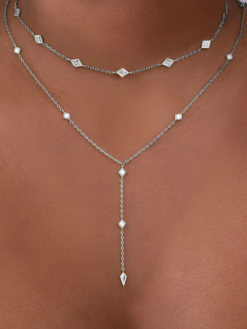 Delicate lariat piece that adds dimension to your everyday look. With dainty drops that sit on a classic chain, it’s a versatile style that effortlessly transitions from minimalist chic to evening elegance.