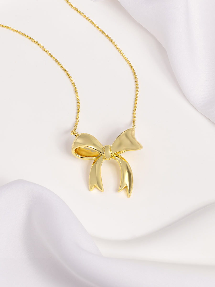 Dive deep into coquette core with our statement Bow Necklace featuring a centerpiece bow design, exuding a playful yet sophisticated charm. Style this with shorter classic chains for a chic layered look
