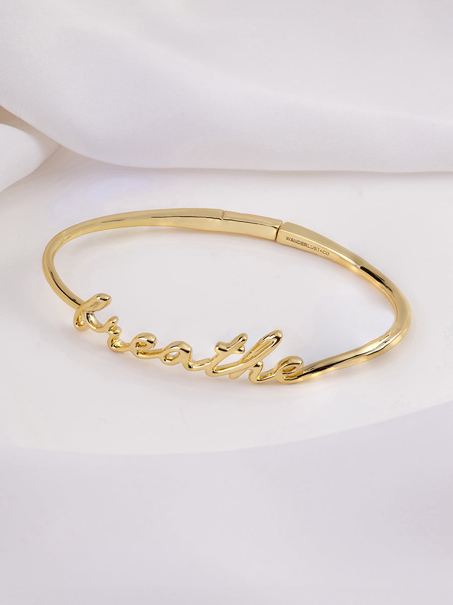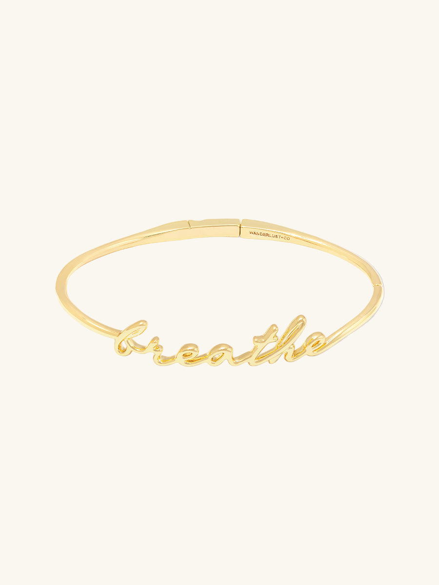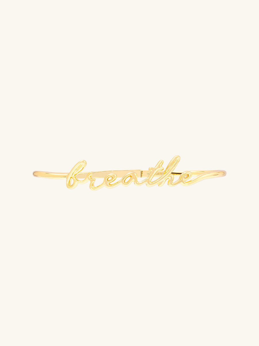 Our Breathe Gold Bangle features one of our favorite mantras that symbolizes mental health. Wear this piece as a daily reminder to honor one’s progress and to breathe through the highs and lows.