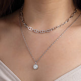 The Capricorn Zodiac Mother of Pearl 925 Sterling Silver Pendant features a slice of the iridescent mother-of-pearl, a natural luminescent material found in oyster shells. Its round pendant is traced with a twisted textured rope silhouette and features the Capricorn zodiac symbol in a sleek and smooth finish.