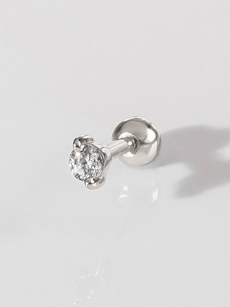 The Diamante Silver Barbell Earring features a single clear, round cubic zirconia gemstone, perfect for a classic finish, which you can wear as part of your curated ear everyday stack. An everyday piece to add to your curated ear everyday stack.