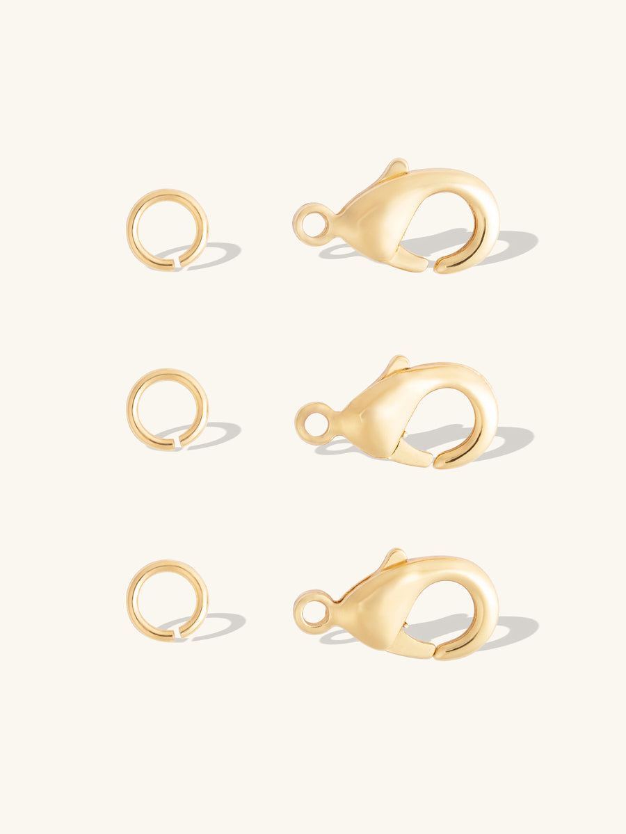 The Gold Jewel Clasps Set is an essential accessory. This set is designed to complete and give new life to your necklace or wristwear chains. Available as a set of 3.