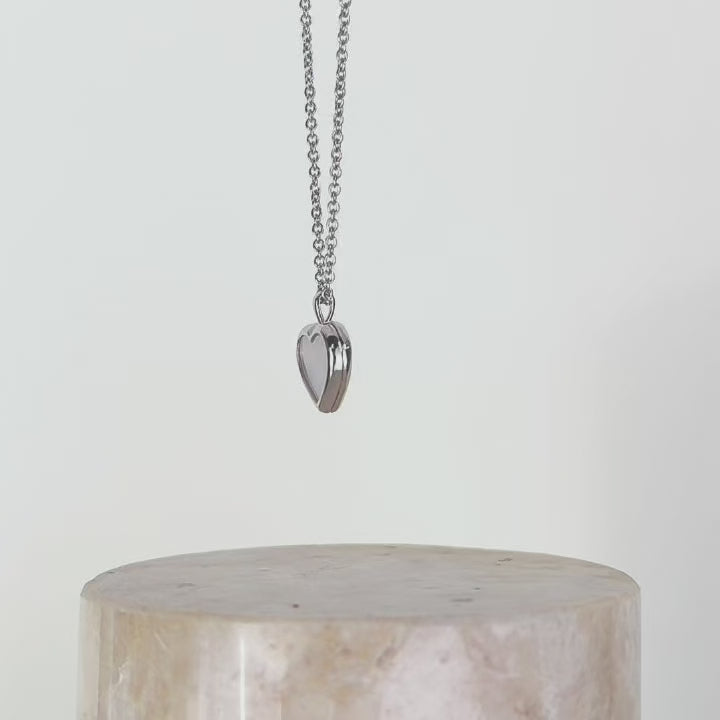 The Heart Mother of Pearl Silver Locket Necklace is a meaningful gift to yourself or someone special which features a sustainably sourced mother of pearl finishing on the outside and inside of the locket. Wear this piece on its own or layered with a dainty choker.
