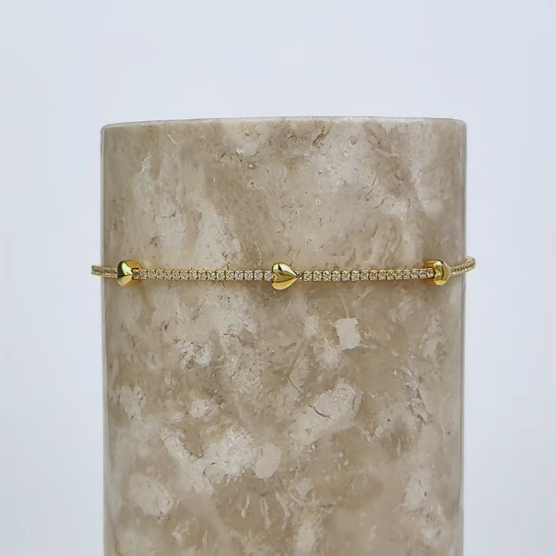 Heart Pave 14K Gold Vermeil Petite Tennis Bracelet