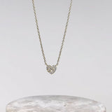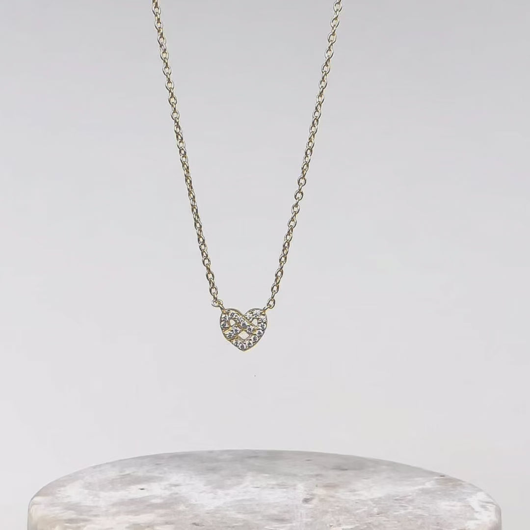 The Pave Heart Pretzel 14K Gold Vermeil Necklace is a little twist of elegance. The petite heart-shaped pretzel, beautifully set with grade 5A cubic zirconia. A timeless piece that brings a touch of sparkle to any occasion.