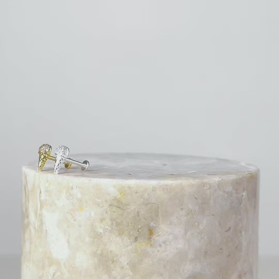 Take a sweet trip down memory lane with the Ice Cream Gold Flat Back Earring, a playful nod to the simple joys of childhood. Remember the excitement of hearing the ice cream truck’s jingle on a warm summer day? Now you can wear that fun memory with these adorable earrings, featuring a dainty scoop of ice-cream on a miniature sugar cone, topped with a generous sprinkle of cubic zirconia crystals.
