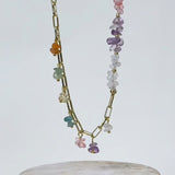 Brighten your look with the Kaleidoscope Beaded Gold Necklace, a radiant piece from our Sun-Hues Collection. The necklace features a stunning mix of colorful gemstone chips and a delicate gold chain, creating a perfect balance of organic charm and modern elegance. The vibrant array of hues—ranging from soft pastels to rich earth toes—captures the beauty of a sunlit shoreline. Whether worn alone or layered, this effortlessly chic piece adds a touch of warmth and wanderlust to any look.