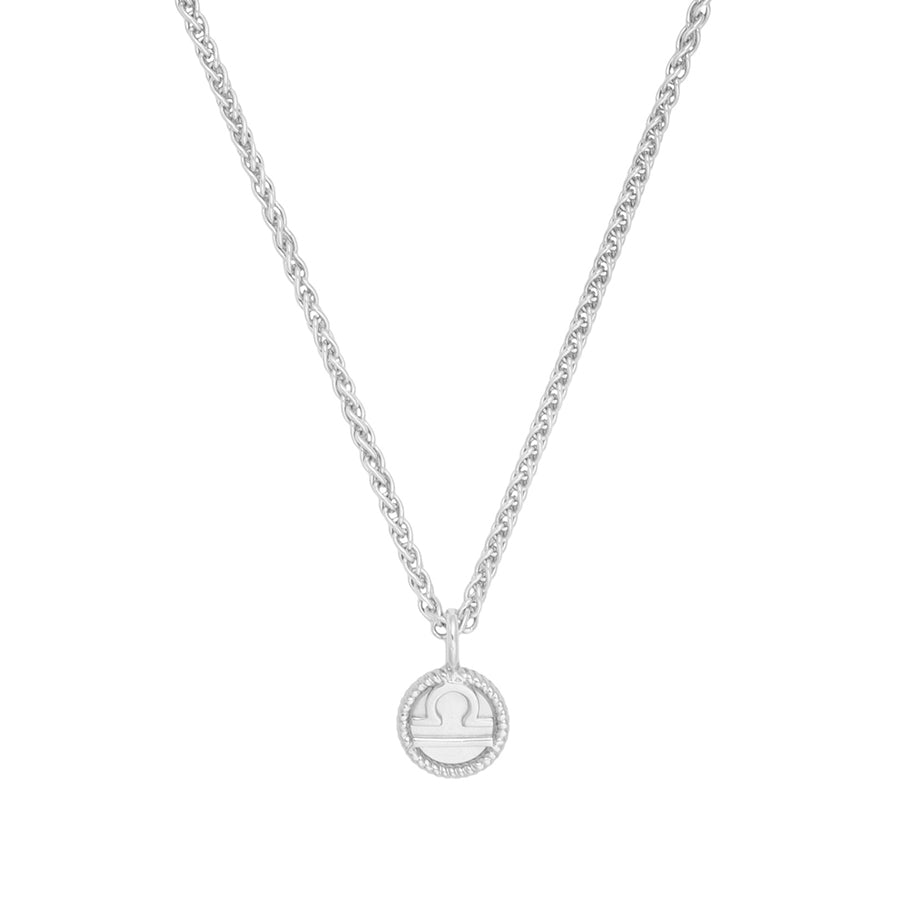 The Libra Zodiac Mother of Pearl 1925 Sterling Silver Pendant features a slice of the iridescent mother-of-pearl, a natural luminescent material found in oyster shells. Its round pendant is traced with a twisted textured rope silhouette and features the Libra zodiac symbol in a sleek and smooth finish.