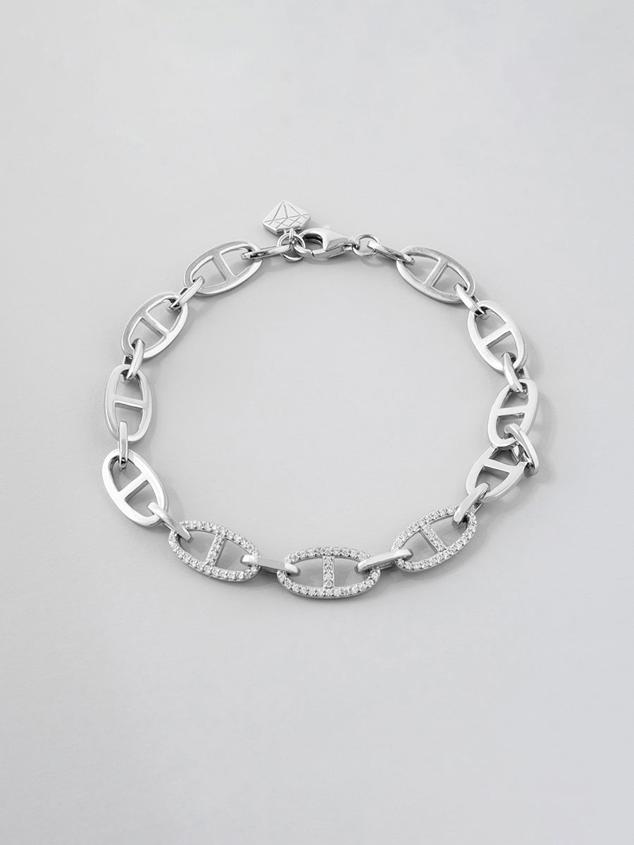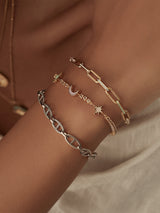 If you’re looking for a bracelet that’s classic but still stands out, the Multi Link Anchor Bracelet is the perfect piece for you. This piece looks great both layered or on its own, and features a row of mariner chain links, with the three middle links highlighted with cubic zirconia gems.