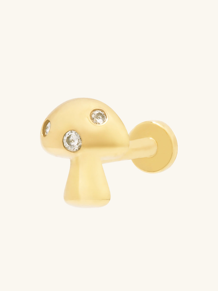 Step into a whimsical world with our Mushroom Gold Flat Back Earring - charming pieces that capture the enchanting essence of nature in a playful design. Crafted with gleaming gold and 5A grade cubic zirconia gems, these earrings are perfect for adding a touch of fun to any outfit - whether you're dressing up for a night out or adding flair to your everyday look.