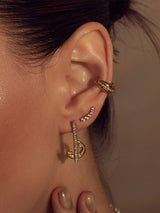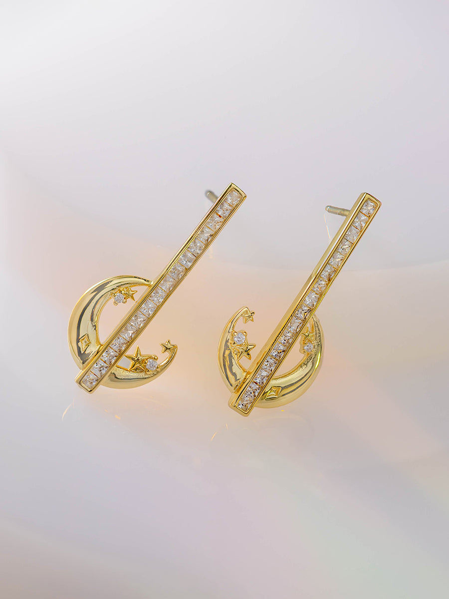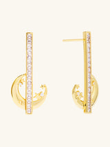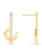 Elevate your outfit by styling the My Moon Gold Earrings that feature cubic zirconia gemstones together with the Golden Rays Gold Necklace - a perfect pair for an effortless look this season.