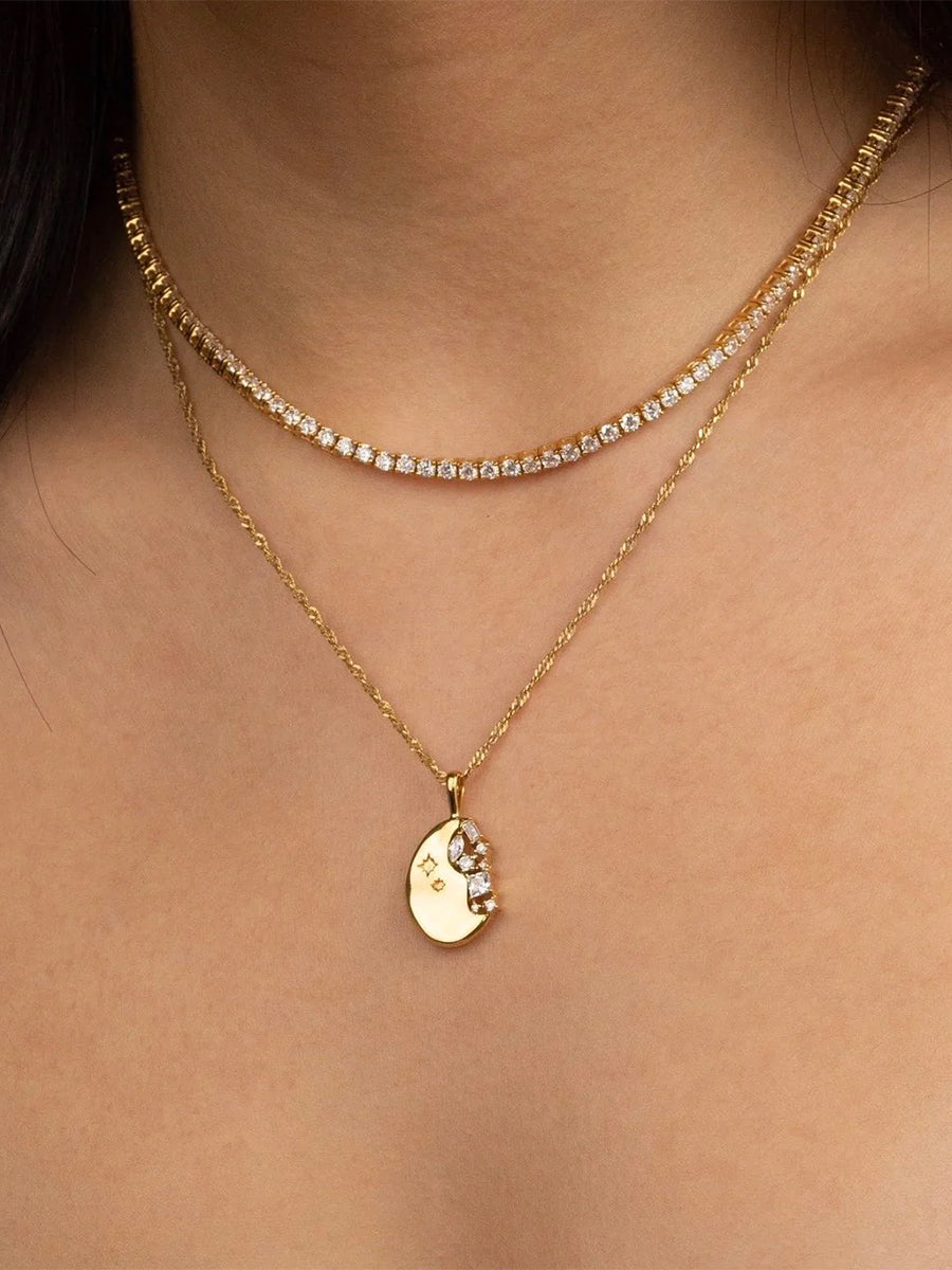 A classic style icon, the Pave 14K Gold Vermeil Tennis Necklace is just the piece you’ve been looking for. This iconic necklace was designed with a secure fold-over clasp, and crystals set to avoid flipping or catching on fine hair or materials. Trust us, you'll be telling all your friends about this.
