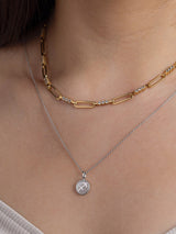 The Sagittarius Zodiac Mother of Pearl 925 Sterling Silver Pendant features a slice of the iridescent mother-of-pearl, a natural luminescent material found in oyster shells. Its round pendant is traced with a twisted textured rope silhouette and features the Sagittarius zodiac symbol in a sleek and smooth finish.