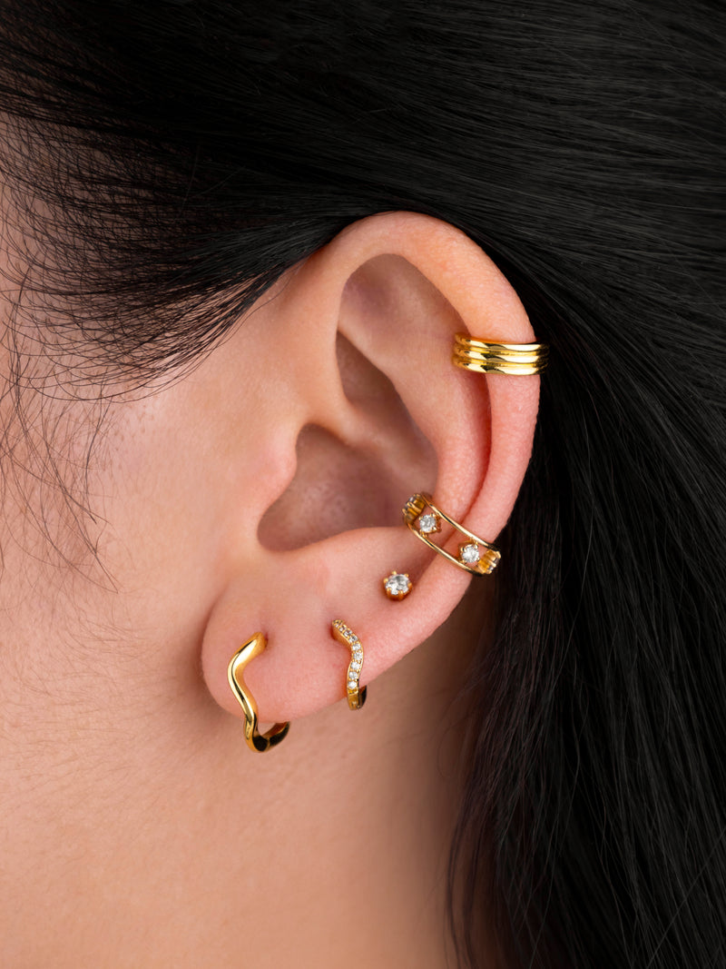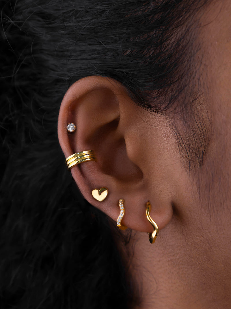 A subtle sparkle moment. The Scallop Pave Baby Huggies combine delicate curves with hand-set pave stones for a refined twist on a playful silhouette. They’re dainty, eye-catching, and perfect for second piercings.