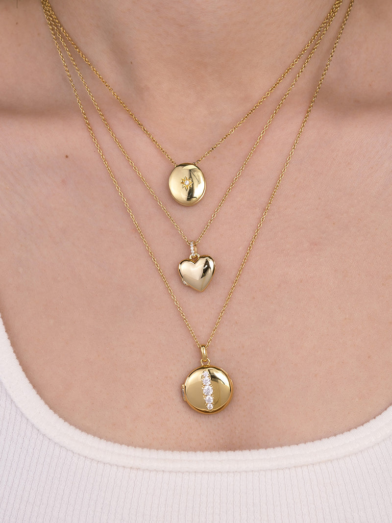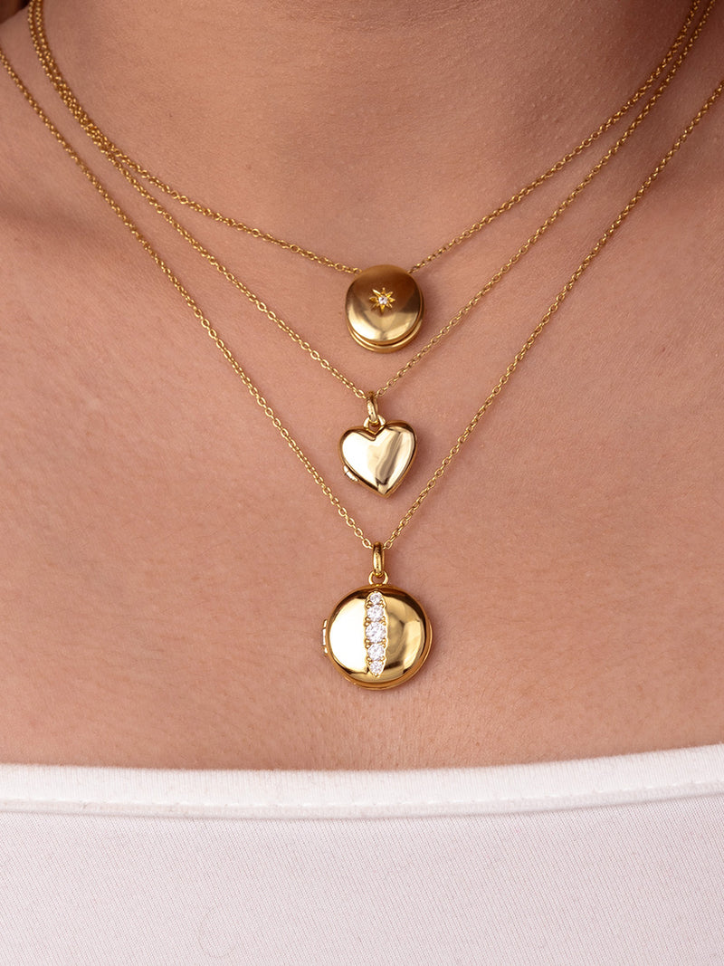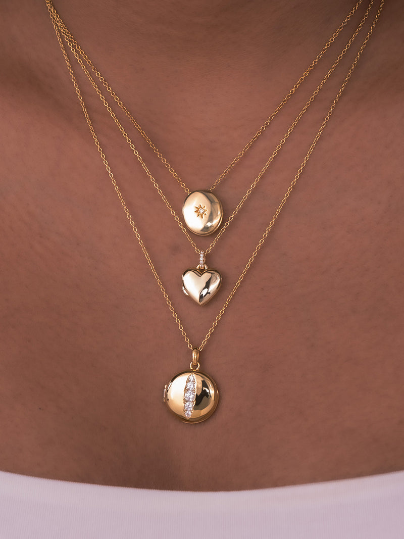 Designed with a striking starburst detail across its surface, this locket is crafted in 14K gold vermeil. The raised detailing catches and reflects light, creating a subtle sense of movement and brilliance. It’s designed to be a focal piece in any stack. Make it your own with a custom engraving.