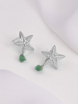 Embrace the magic of the ocean with our Starfish Aventurine Silver Earrings. This delicate pair features sparkling cubic zirconia gemstones embedded on starfish pendants with the phrase “you’re a star” inscribed on the back, and aventurine gemstones - a drop of calming green. Let this piece be your reminder to shine bright wherever life’s journey takes you.