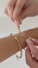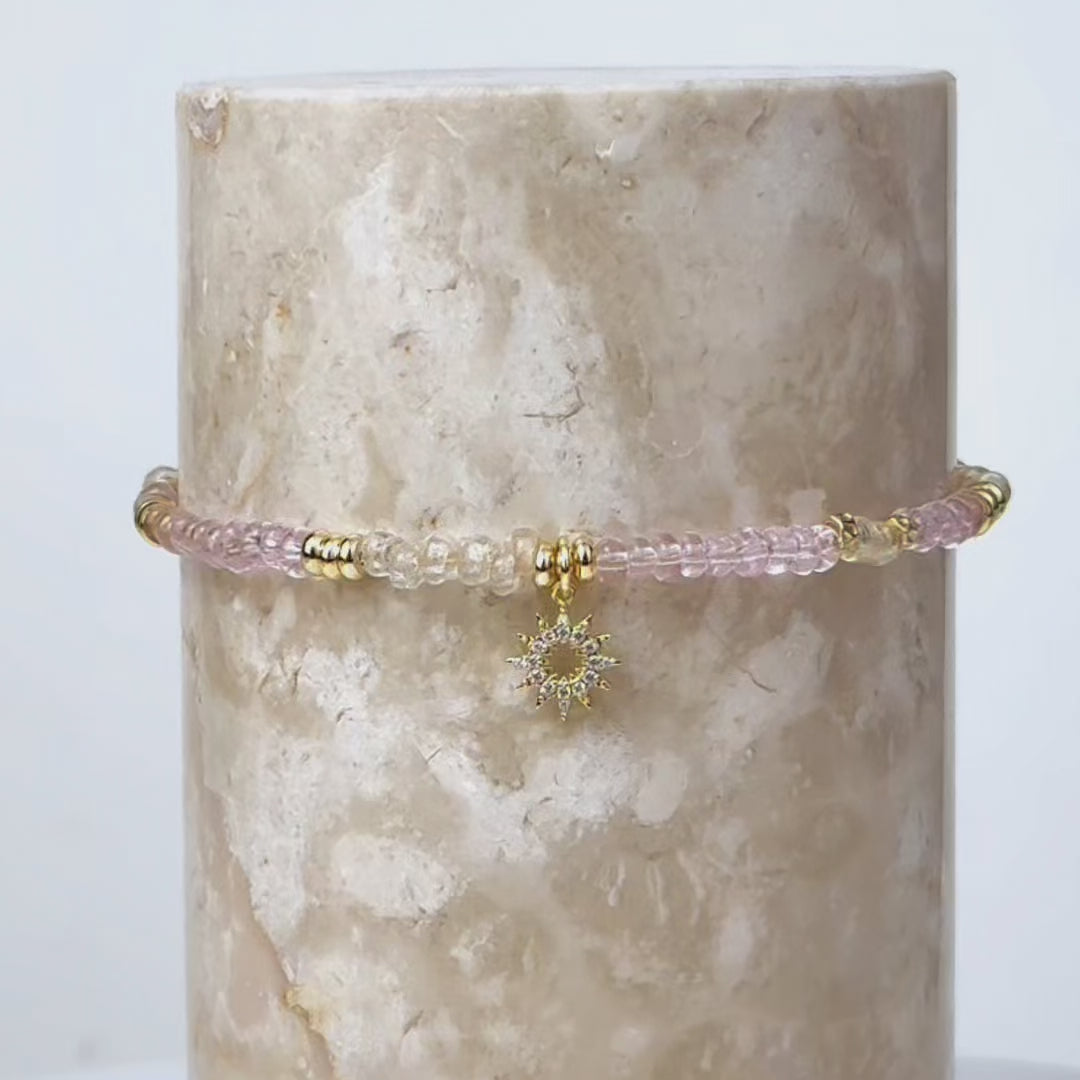 The Sun Hues Beaded Gold Bracelet captures the warmth of golden light with delicate translucent beads and shimmering gold accents. A radiant sun charm at its center adds a luminous touch, evoking the beauty of sunlit moments. Designed with a convenient magnetic clasp, it ensures easy, fuss-free wear for your summer adventures. Lightweight and versatile, making it perfect for an effortlessly radiant glow.