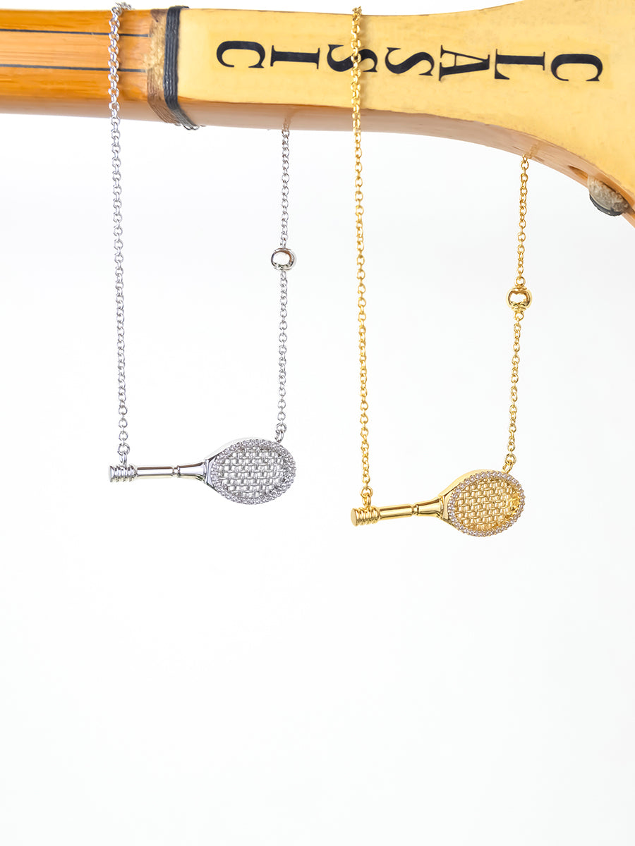 Get ready to serve with the Tennis Your Way Necklace - a playful yet chic twist to your accessory game featuring a delicate tennis racket pendant and a tennis ball strung along its chain, preparing to serve the spirit of 90s fun and sporty flair. Crafted in shimmering silver and framed with cubic zirconia crystals, this piece is perfect for those who love to mix a touch of nostalgia with modern elegance.