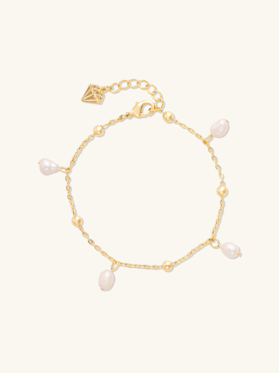 Your next pearly addition lined with mini organic shaped freshwater pearls that's perfect with any beach or casual look.