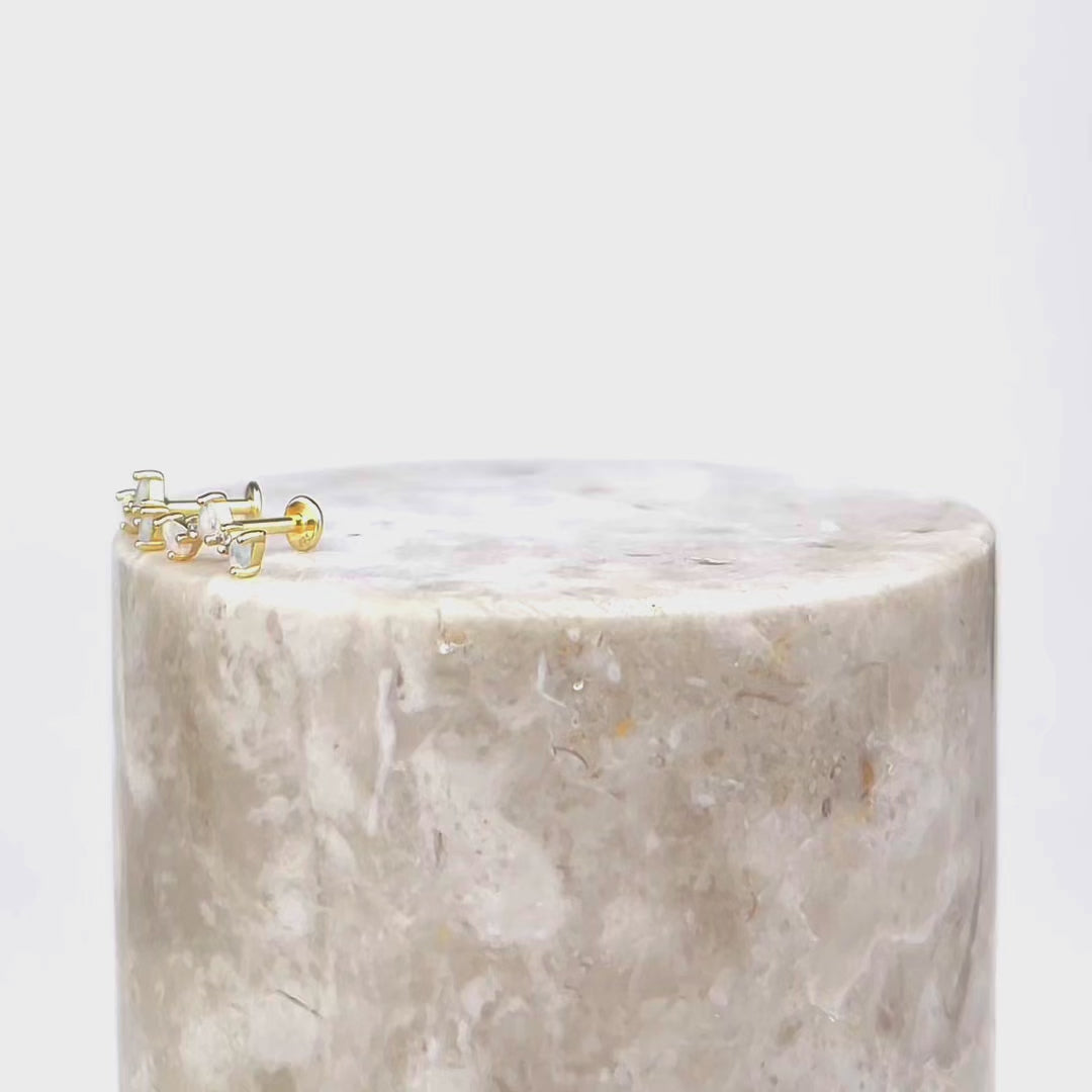 Timeless elegance meets radiant color in the Trio Opal 14K Gold Vermeil Flat Back Earrings. These delicate earrings feature a trio of opal stones, each capturing a beautiful play of light.