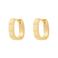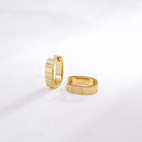 Featuring easy-to-use hinge closures, our Ribbed Bar Gold 10mm Huggie Earrings are timeless and hassle-free to put on and take off. Perfect for any occasion, these huggie earrings are versatile and can be worn with any outfit for an instant put-together style.